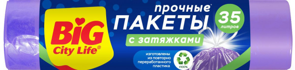 Пакеты д/мусора Big City с затяжками 35л/15шт (51х52см) 13мкм лиловые/30