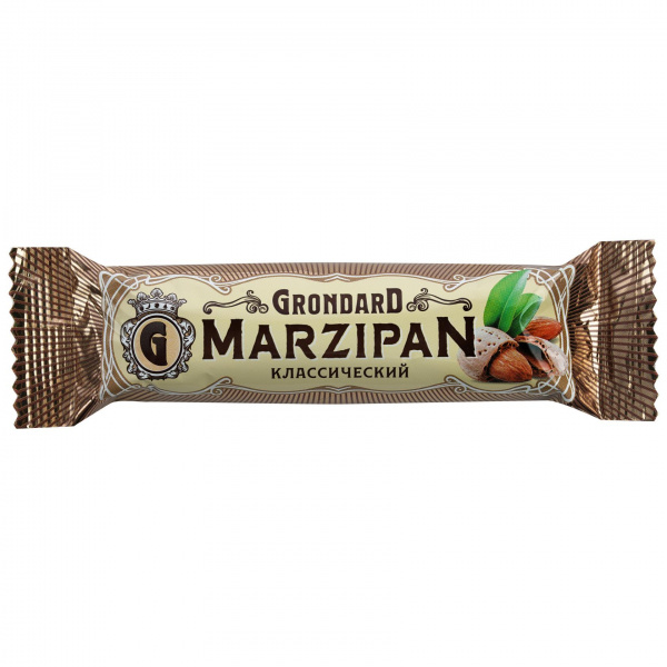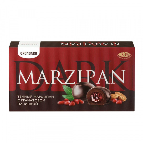 Марципановый батончик Grondard темный марципан с гранатовой начинкой в шок. глазури 50г/24